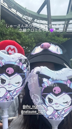本日20時45分出勤‼️ 昨日は社員旅行でユニバ行ってきたよ~! 念願のクロミ帽子げっちゅ!しゅーさんに買ってもらった~꜀^. ̫.^꜆ 隣ぴろしなんだけどこれカップルがやりそうな撮り方よね😡 白馬の王子様希望です! しゅーさんたくさんありがとうございました! ひたすらビール飲んでフライングダイナソーだけ乗って鶴橋へ行ったよ~! ここのお寿司安いし大きくないからとっても食べやすかった! そのあと動いてるタコ食べた🐙食べたかったからめっちゃうれしかったー! ちーがぜーんぶ調べてくれたまじで感謝(私ついて行っただけ) 帰りのバスは死んだように寝て今も眠い!今日は沢山寝る!! 横井さんありがとうございました🌟 今週もよろしくです! 家に着くまで旅行任務完了です✌️疲れすぎて駅から家までタクシー使おうと思ったけど歩いて帰ったら金木犀の香りがして歩いて帰ってよかった(*^_^*)大好きな香り大好きな季節だ ユキ🤍