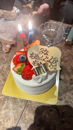 おは 2卓ありがとーう(т т)♡ 1卓目わいつめん!安定!去年に引き続き今年もサプライズケーキもらってしまって超大歓迎ˆ⸝⸝> ·̫ <⸝⸝ˆ⭐️✨✨✨ケーキ大好きなのでめちゃめちゃうれしい!!わたしの好きなものを分かっているので色んなフルーツ沢山のケーキ🎂!!ひな納めしてくれました!沢山沢山ありがとーう💖🎶 2卓目わまさかのサプライズ!!✨来ると思わんかってめちゃびっくりでした!ラストまでありがとうすぎるし出前も頼んでくれて腹パンなりました!しかもBDオリシャンまでありがとう😿😿 日曜だけど今日わ営業してるよ!予定ないよーん救世主求ჱ̒^._.^)🎀